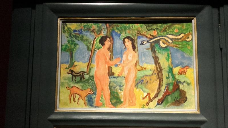 Hendrik Nicolaas Werkman (1882-1945) maakte in 1943 in opdracht deze kast met oudtestamentische voorstellingen. Olieverf op triplex. (In Groninger Museum).
