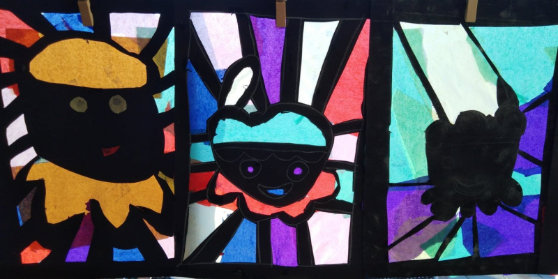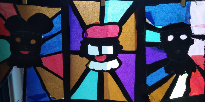 Vooraf is het handig om het begrip glas-in-lood te bespreken en er afbeeldingen van te laten zien.