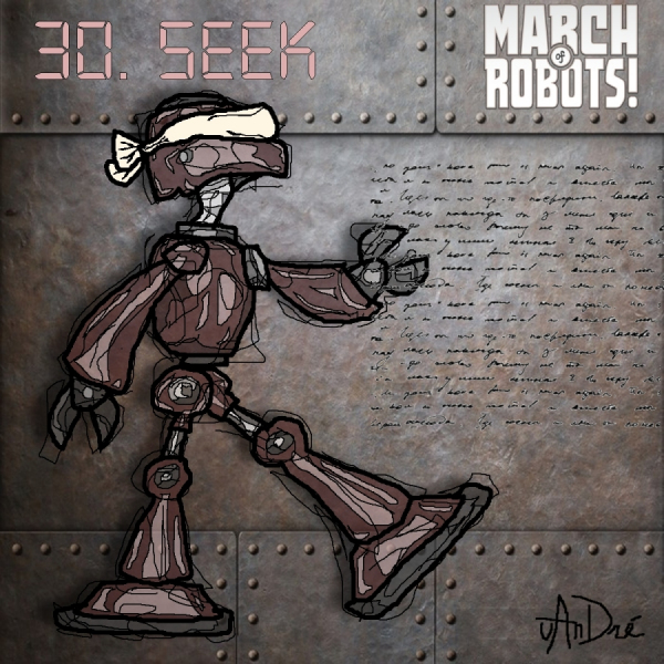 In de maand maart van 2021 ben ik gevallen voor de challenge March of Robots. Elke dag een robot tekenen; met pen, potlood of digitaal. Bij deze Robot-challenge heb ik mezelf opgelegd dat ik wil werken binnen één kleur en dan ook nog eens met bruin. Dat is echt wel anders dan in mijn overige werk. Een uitdaging dus.