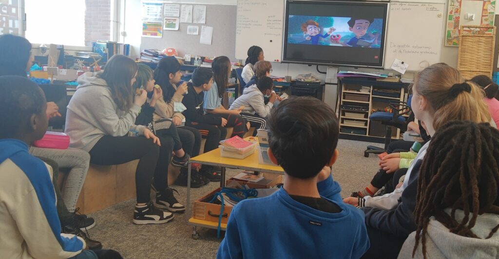 De eerste vraag is natuurlijk: Wat zie je? Hoe reageren beide jongens? Hoe reageren de klasgenootjes?