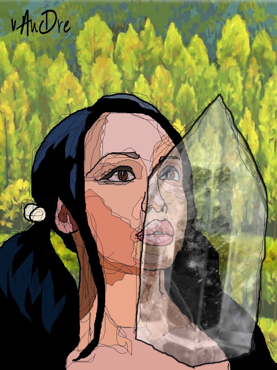 Deze digitale tekening is lichtelijk geïnspireerd op de (poppen)film “The Dark Crystal” van Jim Henson. Het werk gaat over de uiteindelijke samenkomst: de zwarte kristal die uiteindelijk weer helder wordt. Deze samenkomst vind je ook terug in het karakter op het doek. Zij heeft namelijk kenmerken van beide hoofdrolspelers uit de film.
