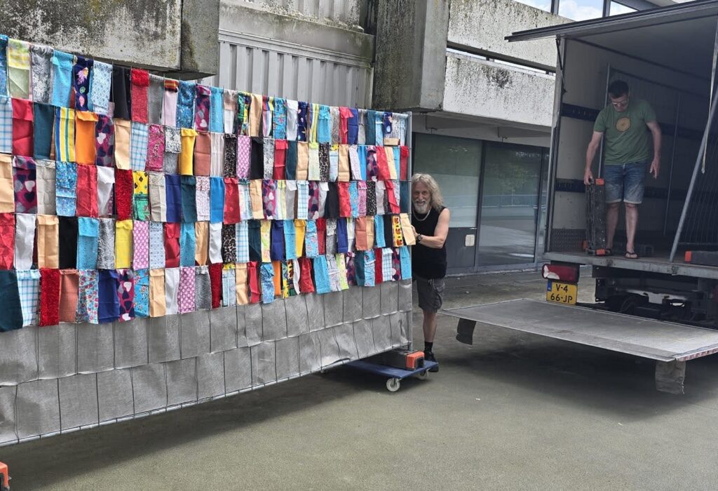 Met de vrachtwagen en met behulp van zoon Tom en behulpzame vrienden Klazina & Jan-Willem worden de tien hekken (met betonnen voeten) verplaatst naar OpHetHoekje. Daar wordt huiswerkbegeleiding gegeven en daar heb ik mijn atelier. Voor dit moment sponsoren ze mij door tijdelijk het grote lokaal beschikbaar te stellen.