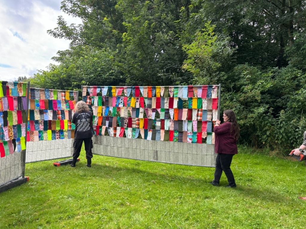 Na een korte pauze volgen de laatste loodjes, waaronder het koppelen van de hekken met een verbindingsstuk. Dit verstevigt de installatie nog meer.