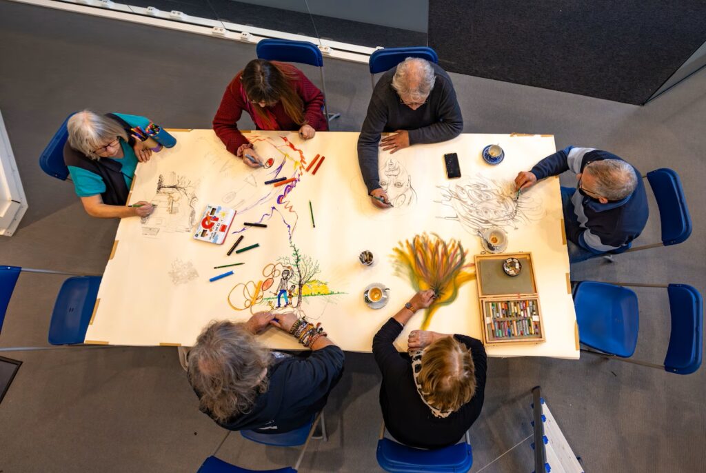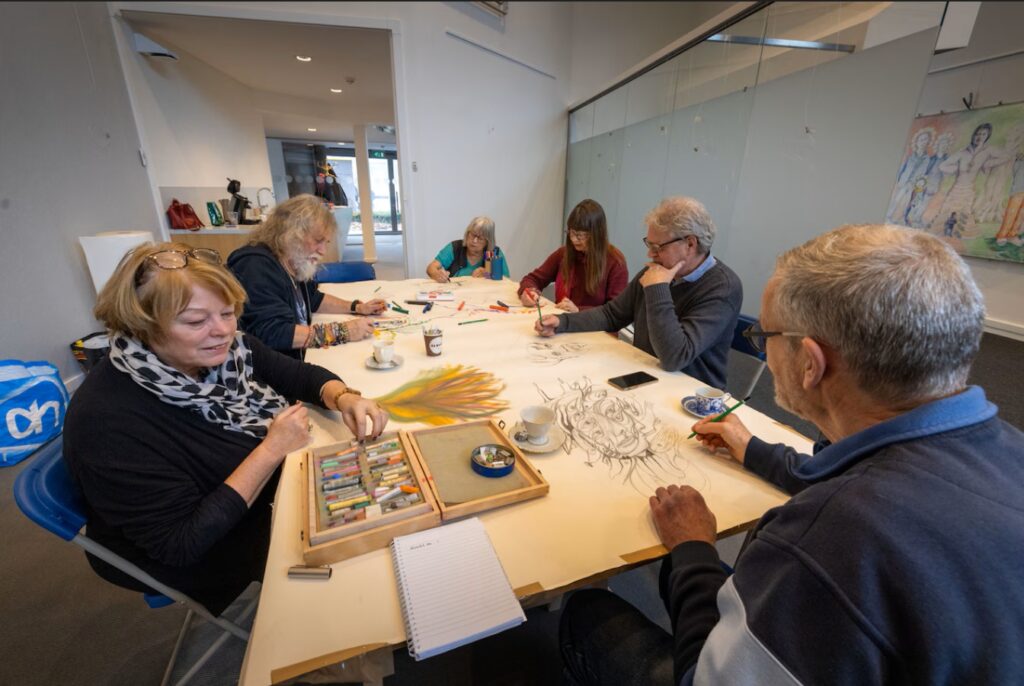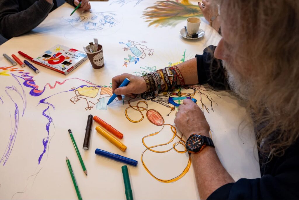Schetsen en praten aan deze tekentafel in Lelystad: ‘Creativiteit is de sleutel tot geluk’
