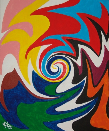 Kleurenspiraal (VERKOCHT) 2009 Maart 2009 (50-60 cm; acrylverf) Met olieverf werd het kleurige, abstracte doek erg stylistisch en strak. Hier wilde ik meer actie, meer beweging. Gerelateerde berichten:Uitgedanst (VERKOCHT)Je eigen wegOp zoek naar abstract - deel 6Elke dag een emotieDie kant op!Crazy FishShe-Body (4) (VERKOCHT)Ode aan Peter de Smet (VERKOCHT)