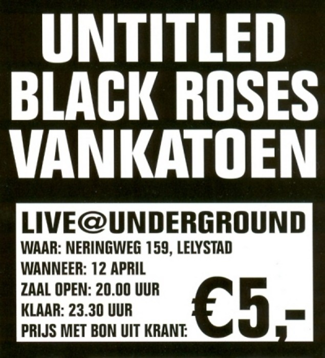 De eerste keer dat ik serieus een grote Nederlandse band filmde was bij Van Katoen (april 2008). De Black Roses had, samen met een andere Lelystadse band, een aantal weken cursus gehad van Van Katoen. Daarna mochten ze samen optreden. Die avond heb ik alle drie de bands gefilmd: Black Roses, Untitled (die hier Fake Freedom heet) en natuurlijk Van Katoen zelf. Het is een twee-camera-registratie die goed de sfeer in de Underground weergeeft.