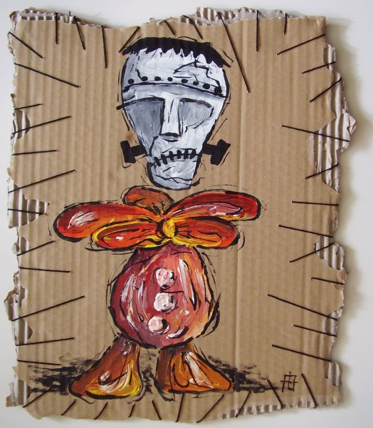 Genaaid en ingebonden (VERKOCHT) 2012 April 2012 (40-50 cm; ingelijst; acryl op karton) Een vrolijke, clowneske karikatuur met een “geknutseld” hoofd. Geschilderd op een stuk karton, waarvan de rand met katoen is “versierd”. Gerelateerde berichten:Werk voor Benefiet (2) (VERKOCHT)Uitvinders (VERKOCHT)Run AwayBedenk een naam !Gambling (VERKOCHT)Vrolijke melk (Koe) (VERKOCHT)LoveKoeien