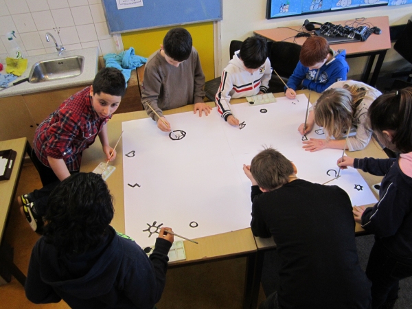 Na een minuut of 10 draaiden de groepen door naar een andere tekening.