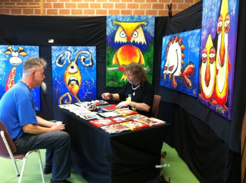 De laatste zondag van februari 2014 (de 23e) was het weer tijd voor de maandelijkse KRL-expo. Wederom in basisschool De Fontein, samen met Tiny de Bruin (abstracte schilderijen), Ada Heidbuurt (sieraden), Kirsten bij’t Vuur (papier-maché) en Richardvan Ekeren (gitaren en schilderijen).