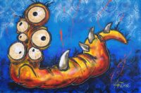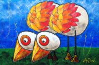 De app was een groot succes. En André zorgde ervoor dat meer van zijn schilderijen begonnen te ‘bewegen’. Hij maakte leuke animaties voor zijn doeken. Bijvoorbeeld van een raar soort katvogel die bloemetjes at, die telkens maar weer aangroeiden.