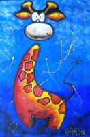Soms schilderde hij meer dieren op één doek. Hij dacht dan aan zijn gezin en aan zijn dochter die hem dit idee had gegeven. Andere keren schilderde hij dieren uit de dierentuin, alleen een stukje gekker. Zoals: de giraf met de korte pootjes.